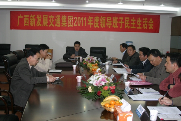 12月21日,廣西新發(fā)展交通集團有限公司黨委在南寧召開了以“堅持以人為本企業(yè)文化理念,發(fā)揚密切聯(lián)系職工群眾作風”為主題的2011年黨政領導班子民主生活會。自治區(qū)交通運輸廳總工程師王劼耘、廳直屬機關黨委專職副書記羅華芝到會指導。集團公司朱堅和、李定倫、張友坐、劉明洪、鄧遠志、覃炳賢等六位領導班子成員出席會議,集團公司機關黨支部書記列席會議。