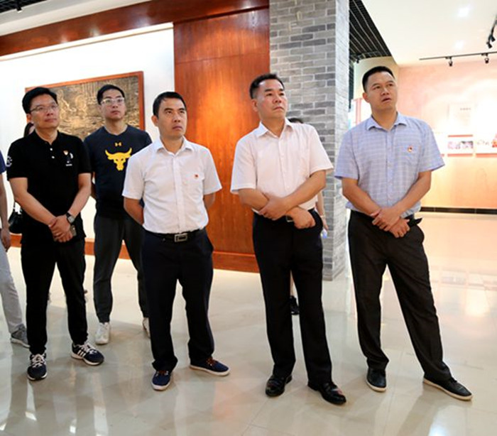 圖一:集團(tuán)公司紀(jì)委書記韋慶和(右二)、新恒通公司黨委書記賴水平(右一)帶隊(duì)參觀于成龍廉政文化展示館